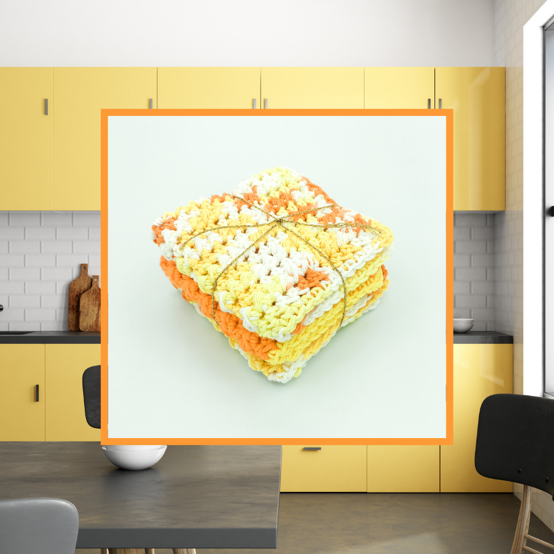 If you must do the dishes, at least pamper yourself with these cotton dishcloths! These have been hand-crocheted with love especially for your kitchen.
