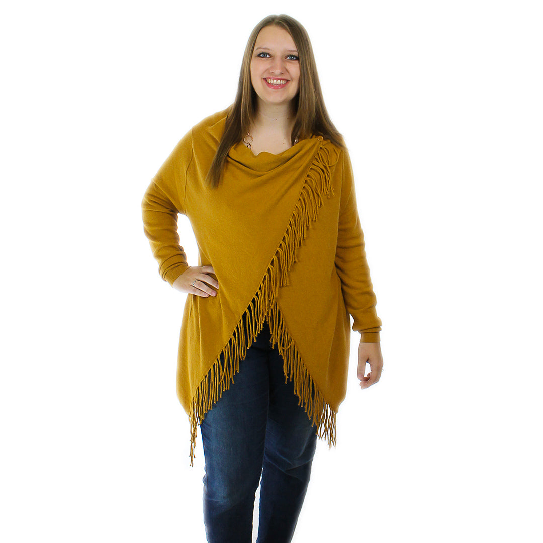 This versatile fringed sweater can go from casual to sophisticated with a couple of buttons!
