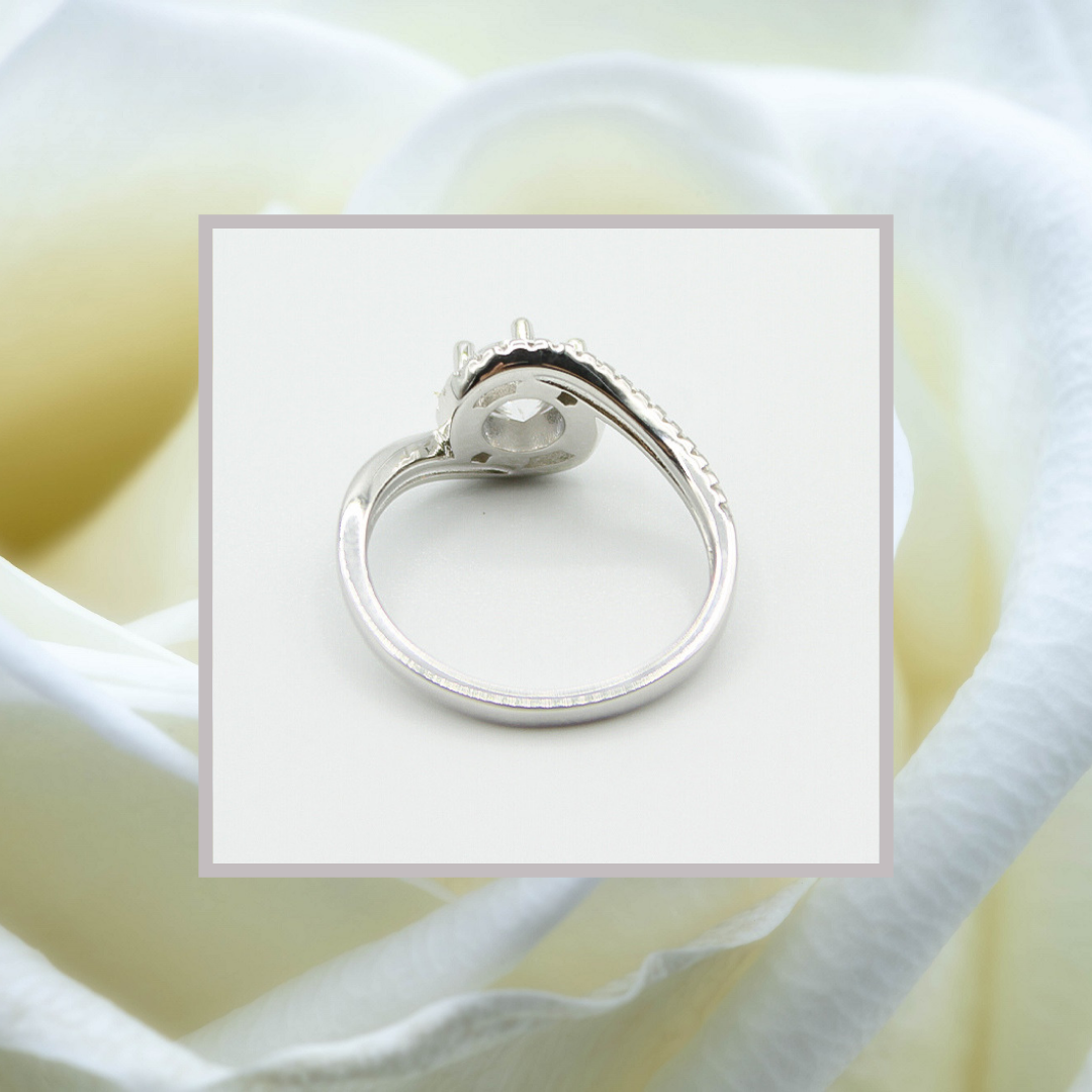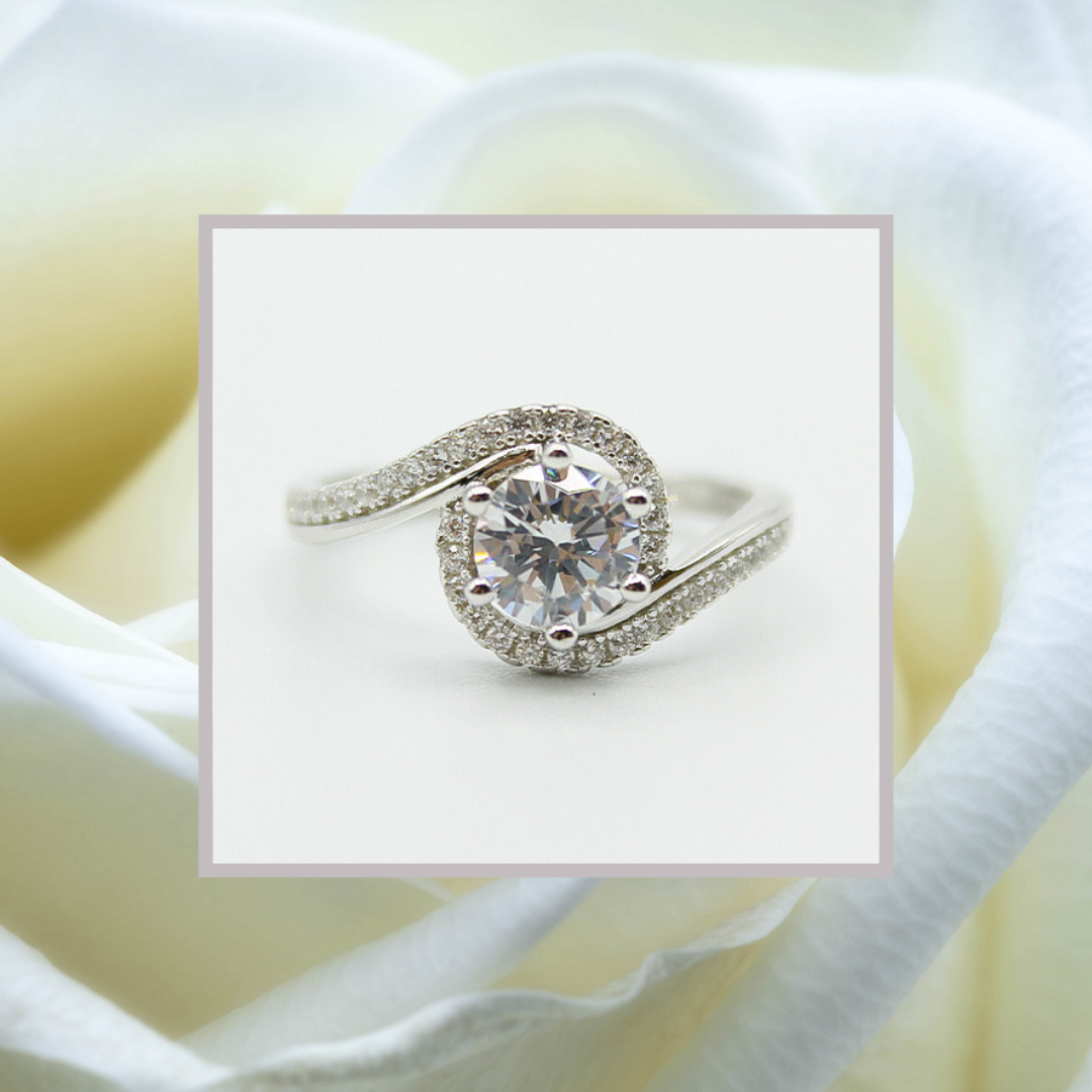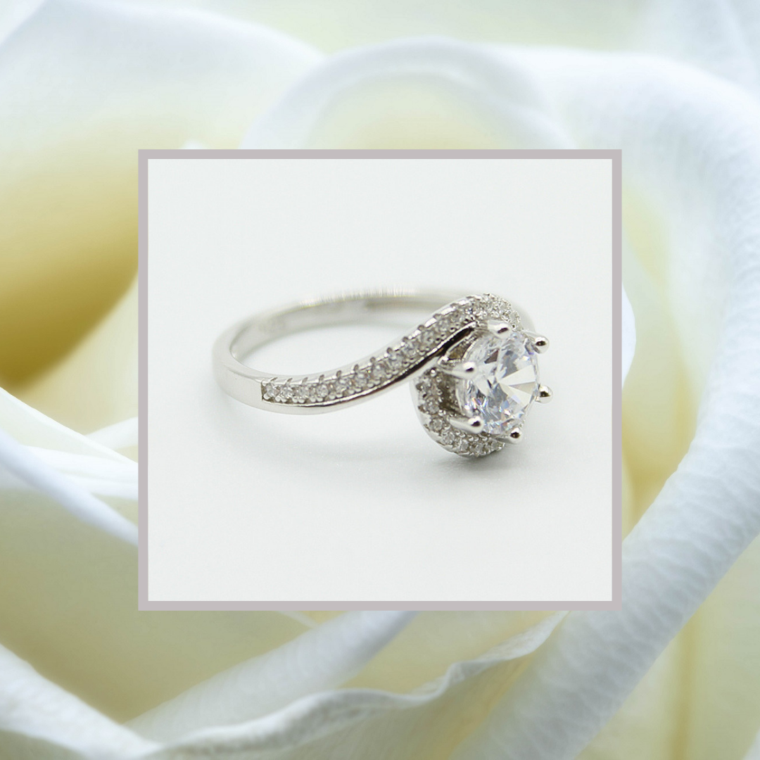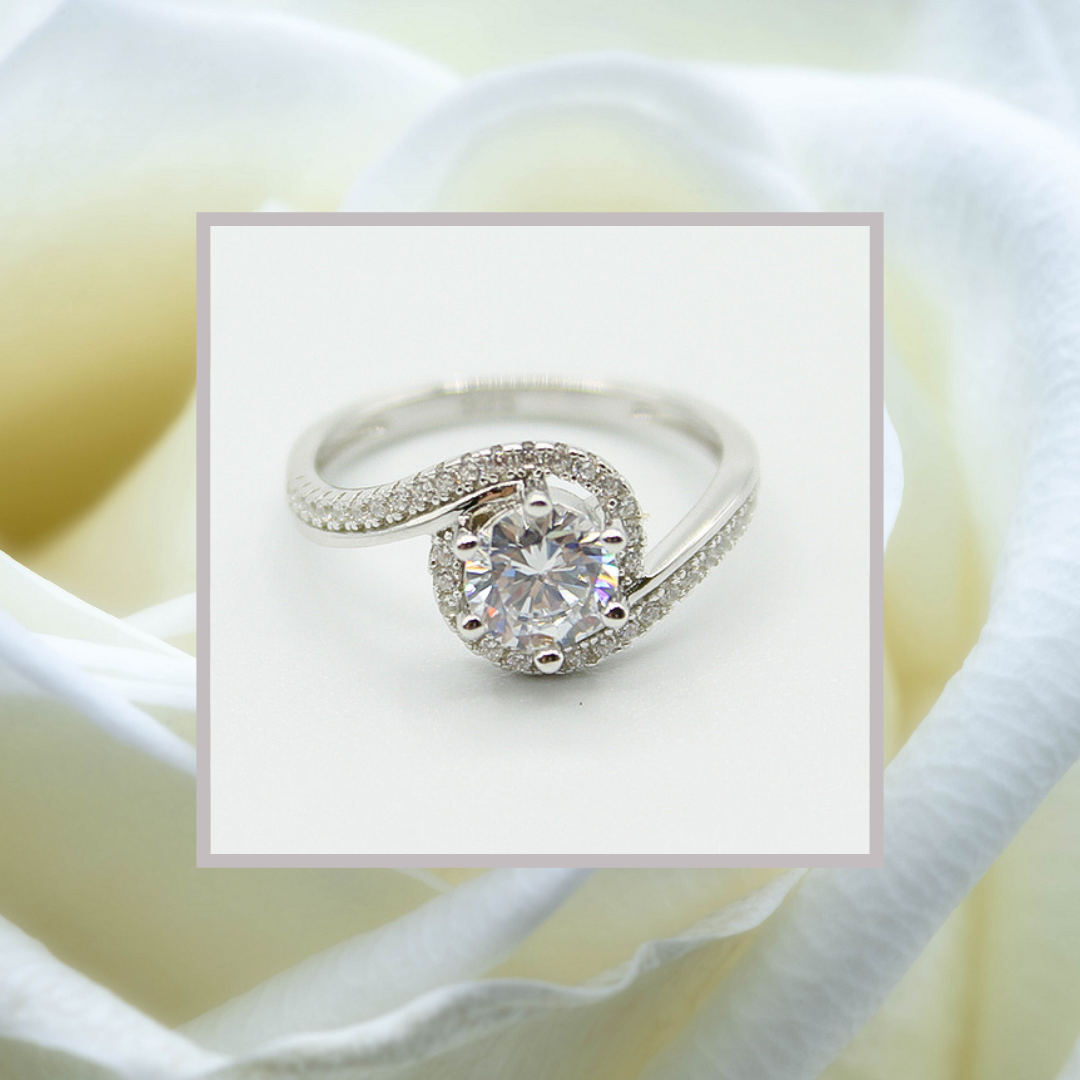 The Farrah, meaning full of glee, is appropriately named for this special occasion ring. The .84 ct. center stone is encircled with 38 clear stones in a classic twist, symbolic of your intertwined love. The 925 sterling silver is then rhodium plated with a high polish finish. This is a win-win because you get the quality of silver that you desire, but no worries about your piece tarnishing.
