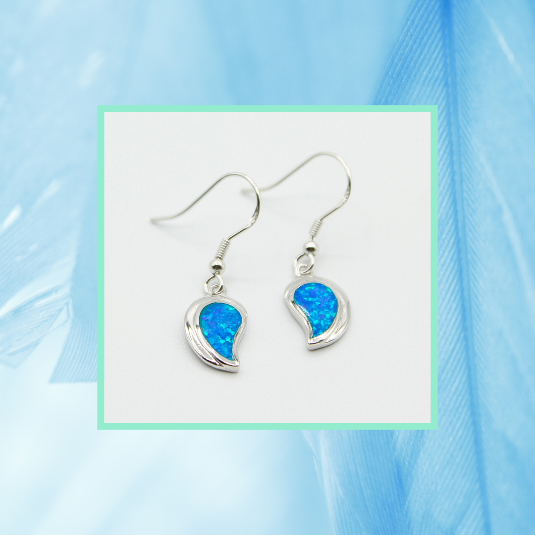 The Patia hook earrings feature the blue lab-created opal inlay in this simple leaf style. These pair well with the Genevieve. The 925 sterling silver is then rhodium plated with a high polish finish. This is a win-win because you get the quality of silver that you desire, but no worries about your piece tarnishing.