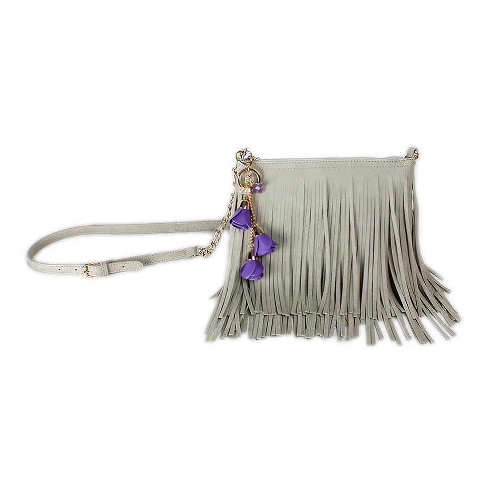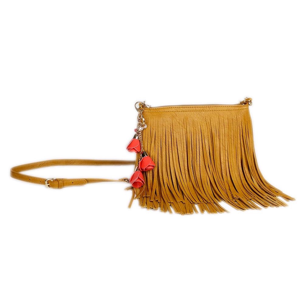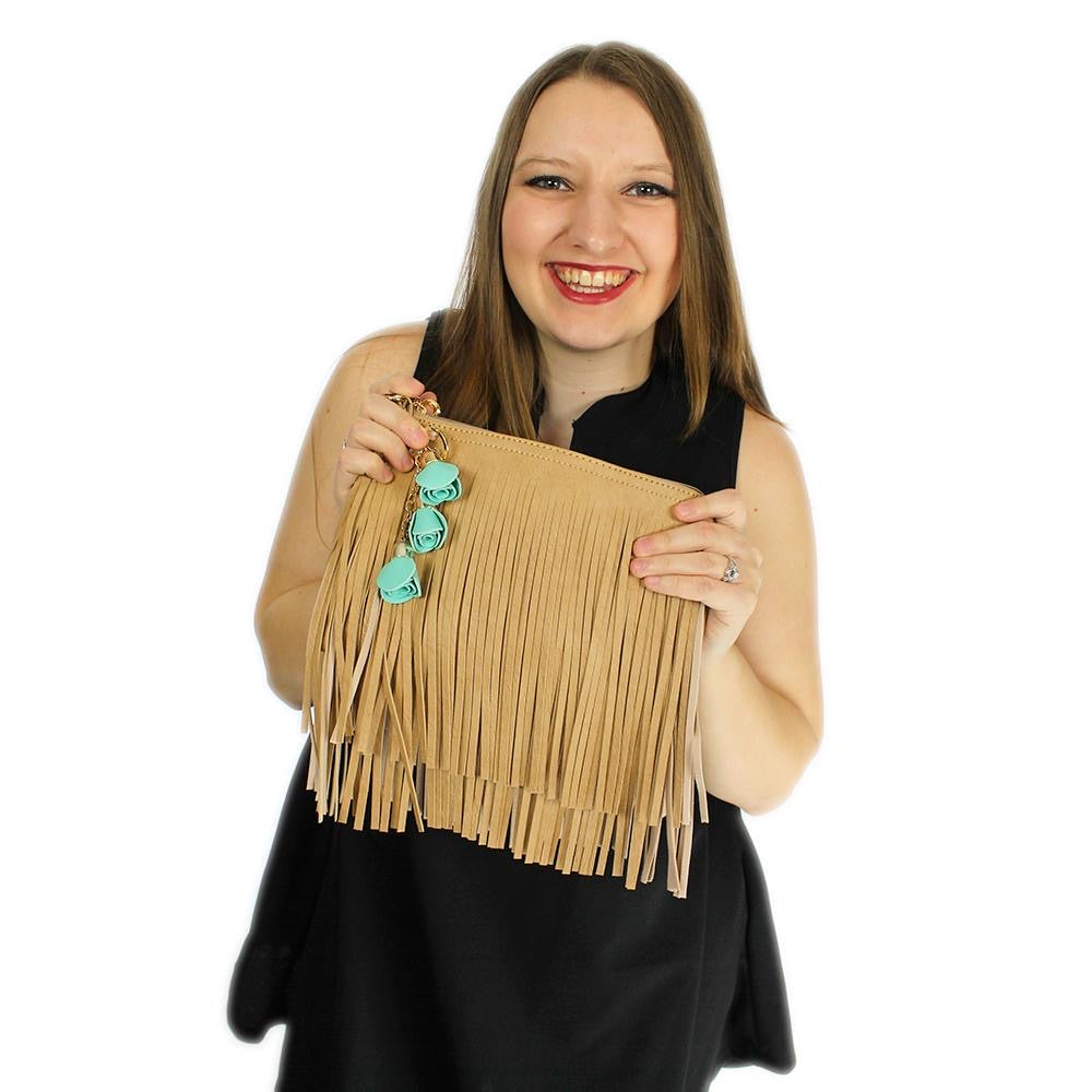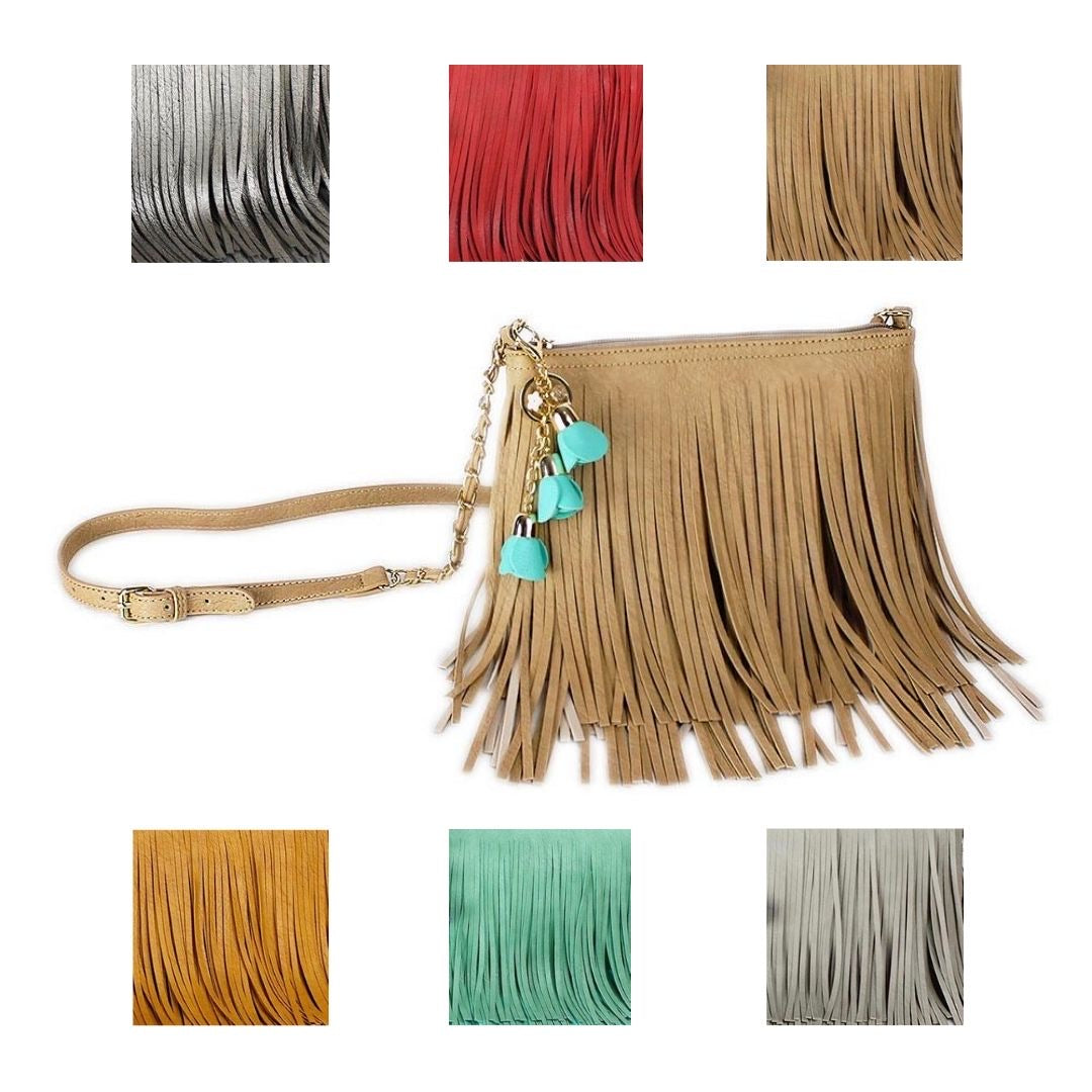 This hot & trendy crossbody bag features a double layer of fringe tassels on both sides! It comes in a variety of colors including burgundy, silver, goldenrod, mint, stone, and grey.